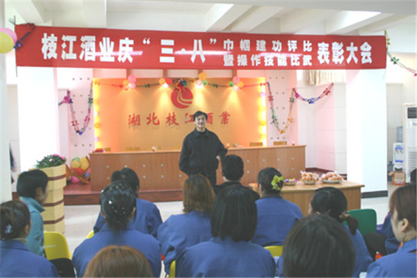 3月7日,枝江酒業(yè)公司組織了慶“三八”巾幗建功表彰大會、操作比武大賽和職工趣味活動。本次活動由公司工青婦委共同組織,邀請公司董事會領(lǐng)導(dǎo)參加,對“三八”紅旗手和先進勞動模范進行了表彰?!?/a>